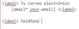 Estos códigos son los campos que conformarán el formulario de contacto que vamos a crear.