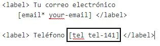Ahora te debe aparecer el código del campo “teléfono”, así que para terminar este paso solo tienes que cerrar con la etiqueta “</label>”.