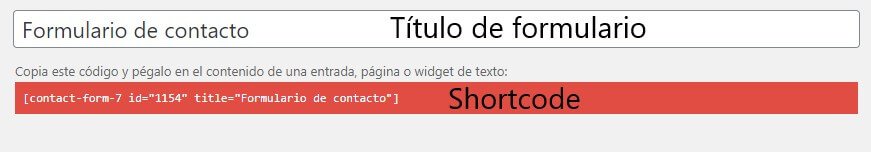 Una vez que guardemos el formulario de contacto, se nos generará un shortcode justo debajo del título.