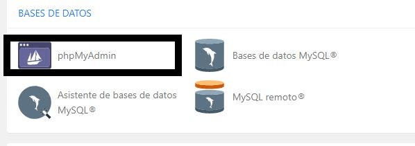 Vuelve al dashboard de tu CPanel y ve a la sección de Base de datos. Ahí vas a dar clic en phpMyAdmin.